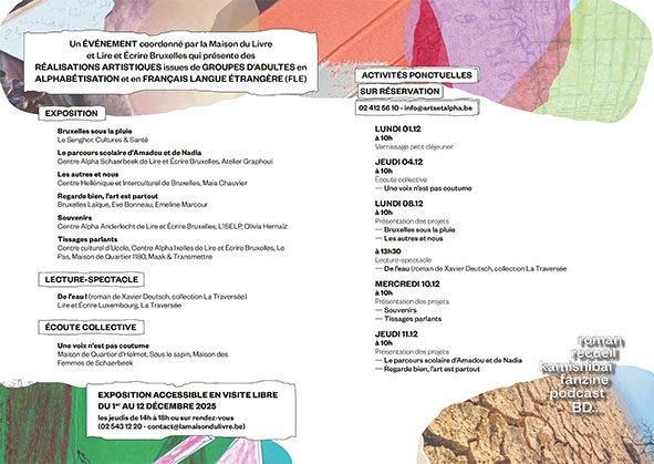 Un événement coordonné par la Maison du Livre et Lire et Écrire Bruxelles qui présente des réalisations artistiques issues de groupes d’adultes en alphabétisation et en français langue étrangère (FLE)